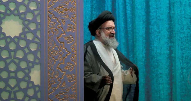 أحمد خاتمي خطيب الجمعة فب طهران لدى وصوله إلى جامع في العاصمة الايرانية أمس (مهر)