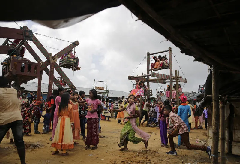 أطفال لاجئي الروهينغا بمخيم في بنغلاديش (أ.ب)