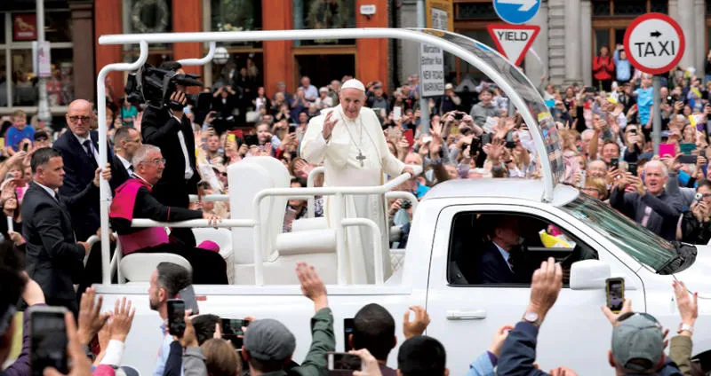 زيارة البابا فرنسيس إلى آيرلندا هي الأولى لحبر أعظم منذ 1979 حين خاطب البابا يوحنا بولس الثاني 1.5 مليون شخص تجمعوا للتبرك. واحتشد الناس على طول الطريق التي سلكها موكب الحبر الأعظم حاملين لافتات كتب عليها «نحن نحب البابا» و«البابا فرنسيس نحبك معاً إلى الأبد».