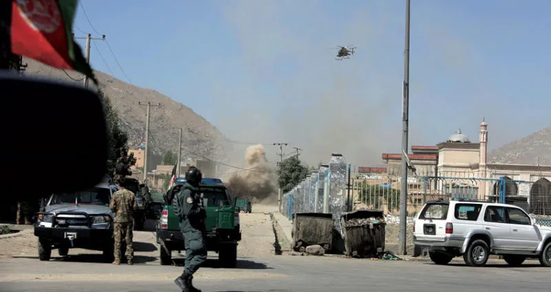 طائرة هليكوبتر أفغانية تقصف منزلاً اختبأت فيه عناصر من حركة «طالبان» على مشارف العاصمة كابل (أ.ب)