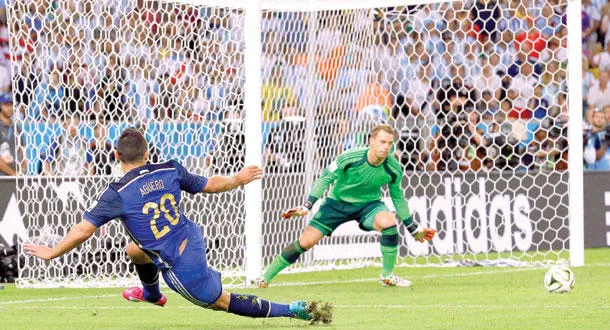 وكان المنتخب الأرجنتيني في طريقه إلى تسديد ركلات الترجيح في المباراة النهائية للبطولة على استاد «ماراكانا» الأسطوري بمدينة ريو دي جانيرو البرازيلية، لكن غوتزه سجل هدف الفوز 1/صفر لألمانيا في الدقيقة 113، قبل سبع دقائق فقط من انتهاء الوقت الإضافي للمباراة. ورغم خيبة الأمل الكبيرة التي وضحت على راقصي التانغو وأنصارهم، أعاد المونديال البرازيلي جزءا كبيرا من كبرياء الكرة الأرجنتينية. وبدأ المنتخب الأرجنتيني المونديال كفريق يعتمد على لاعب واحد هو المهاجم الشهير ليونيل ميسي لكنه أنهى مسيرته في البطولة كفريق متماسك صلد، وكان الأمل هو أن ينجح ميسي أو زميلاه المهاجمان غونزالو هيغوين وسيرخيو أغويرو في هز الشباك لاستكمال العمل الرائع لخط الدفاع المتميز بالفريق.