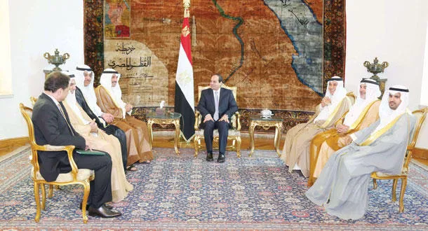 الرئيس المصري عبد الفتاح السيسي لدى استقباله رئيس البرلمان الكويتي مرزوق الغانم والوفد المرافق في القاهرة أمس لبحث القضايا الثنائية والإقليمية (أ.ف.ب)