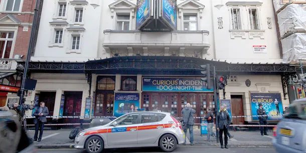 من جهتها، قالت فرق الإسعاف إنها عالجت 76 شخصا نقل 58 منهم إلى أربعة مستشفيات في العاصمة البريطانية. وانهار سقف المسرح أثناء عرض مسرحي. وقال عدد من الحضور إنهم «اعتقدوا أن أصوات التشقق كانت جزءا من العرض»، خلال المسرحية التي اكتسبت شهرة كبيرة «ذي كوريوس إنسيدنت أوف ذي دوغ إن ذي نايت تايم» (الحادث الغريب للكلب في الليل)، التي تحكي عن العالم عبر نظرة طفل يعاني من التوحد.