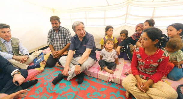 واعتبر غوتيريس أمس أن «الحل الإنساني لا يعالج قضية هؤلاء النازحين وإنما الحل هو الوصول إلى اتفاق لكي يعود هؤلاء إلى منازلهم ومناطقهم ليمارسوا حياتهم الاعتيادية وعلى السياسيين العراقيين الجلوس إلى طاولة المفاوضات».