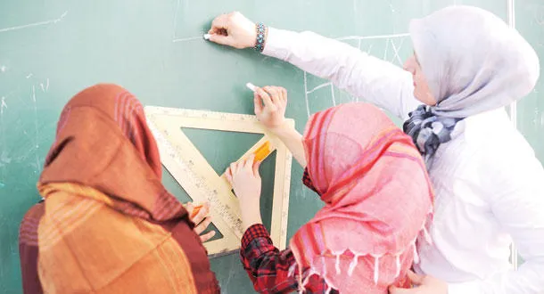 طالبات في مدرسة إسلامية أثناء حصة رياضيات بمدينة برمنغهام أول من أمس