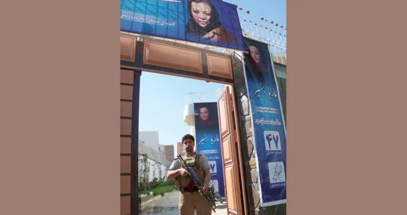 حارس أمني خارج مقر المرشحة الانتخابية الأفغانية ماريا بشير في العاصمة كابلوسط تصاعد أعمال العنف قبل الانتخابات المقررة في 20 من الشهر الجاري (إ.ب.أ)