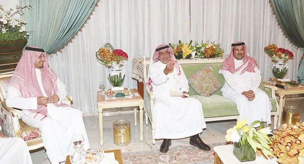 الأمير مقرن بن عبد العزيز والأمير فيصل بن سلمان والأمير منصور بن مقرن لدى حضور ولي ولي العهد السعودي اجتماع المجلس الفخري لمؤسسة البيان الخيرية للتعليم منتصف يوليو الحالي (تصوير: عدنان مهدلي)