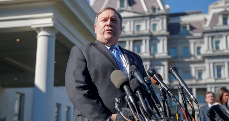 وزير الخارجية الأميركي مايك بومبيو يخاطب الصحافيين خارج البيت الأبيض في واشنطن أمس (إ.ب.أ)
