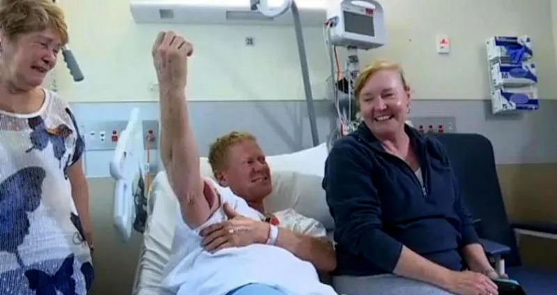 بول كيني يتلقى العلاج في المستشفى بعدما تعرض لعضة قرش (سكاي نيوز)