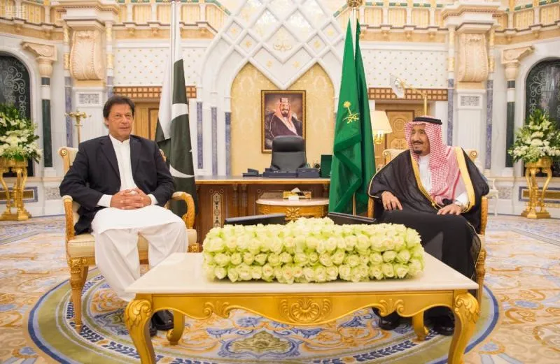 خادم الحرمين الشريفين الملك سلمان بن عبد العزيز خلال استقباله رئيس وزراء باكستان عمران خان (واس)