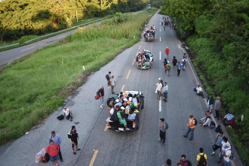 مهاجرون من هندوراس على طريق في بلدة ماباستيبيك المكسيكية يتّجهون إلى الحدود مع الولايات المتحدة (أ. ف. ب)