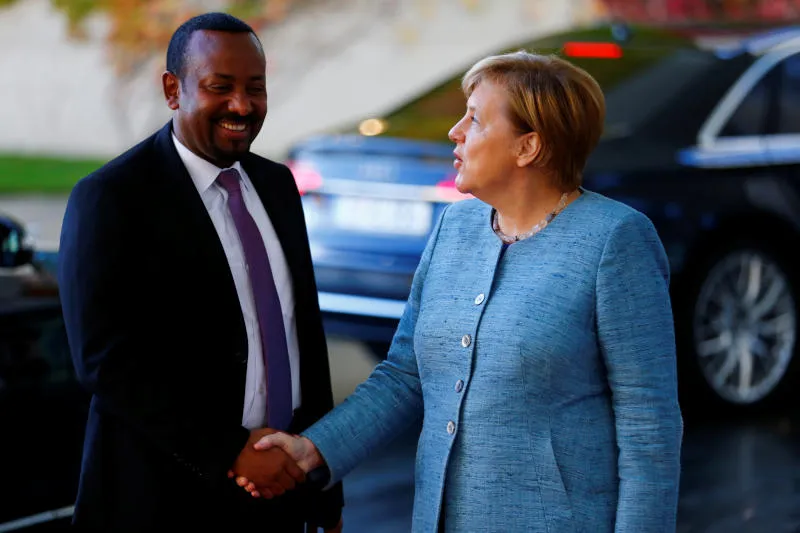المستشارة الألمانية أنجيلا ميركل ترحب برئيس وزراء أثيوبيا آبي أحمد (رويترز)