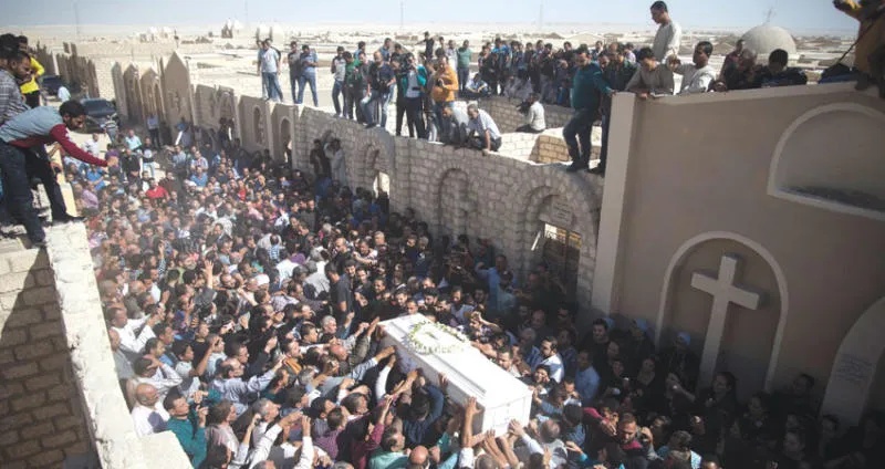 شيع آلاف المصريين، أمس، جثامين 7 ضحايا من الأقباط، بينهم 6 أشخاص من عائلة واحدة، سقطوا جميعهم في هجوم «إرهابي» تبناه تنظيم داعش على حافلة كانت تقلهم أول من أمس، وكانوا في طريقهم لزيارة أحد الأديرة بصحراء محافظة المنيا (200 كيلومتر جنوب القاهرة).
