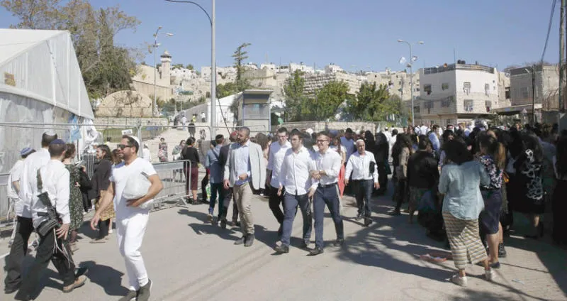 عائلات يهودية خلال احتفال ديني في مدينة الخليل (أ.ف.ب)