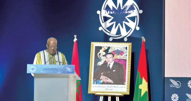 الرئيس البوركينابي يتحدث في منتدى {ميدايز} الذي احتضنته طنجة أمس («الشرق الأوسط»)