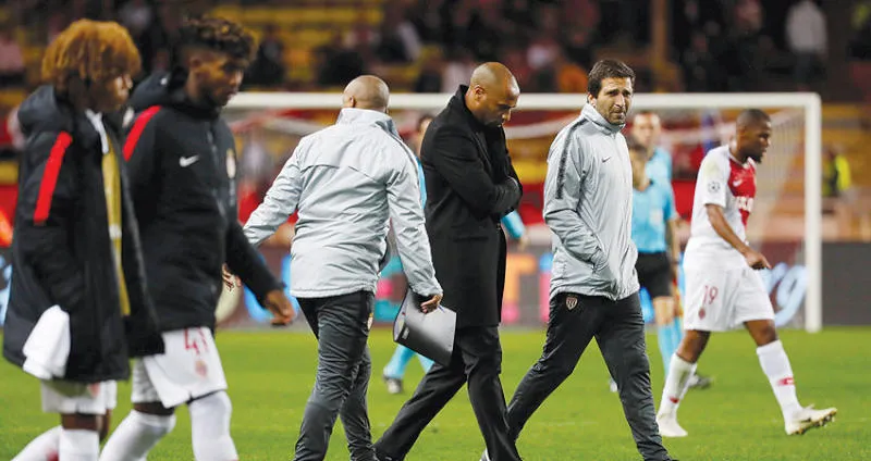 تييري هنري يخرج من الملعب متأثراً من نتائج موناكو السلبية (رويترز)