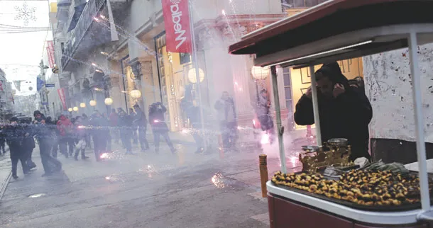 اشتباكات بين قوات الأمن التركية ومتظاهرين ضد حكومة إردوغان في اسطنبول أمس (إ.ب.أ)