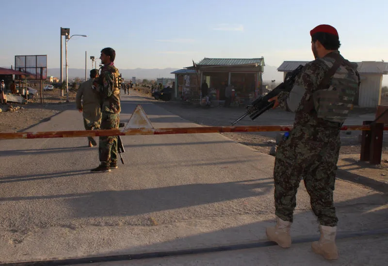 جنود من الجيش الأفغاني في حراسة قاعدة عسكرية عقب الهجوم الانتحاري بإقليم خوست (رويترز)