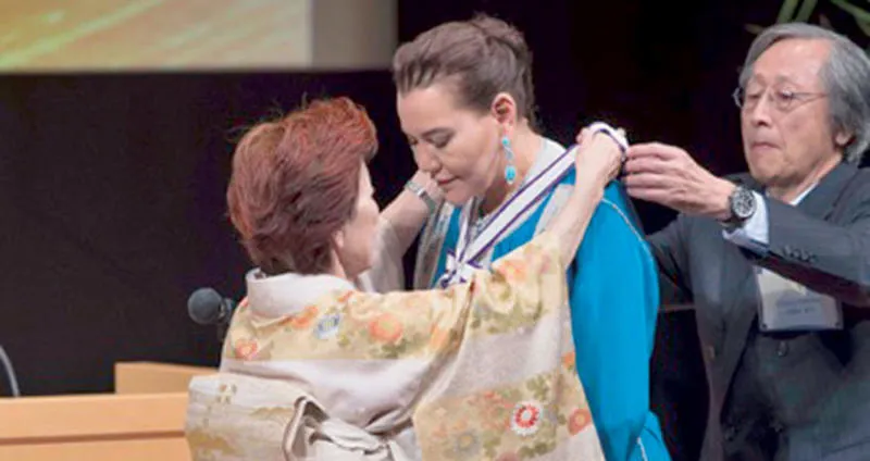 وتسلمت الأميرة للا حسناء، وهي رئيسة مؤسسة محمد السادس لحماية البيئة، هذه الجائزة الدولية من يدي هيرو سيونجي، رئيس المجلس الإداري لمؤسسة «غوي»، التي تدعم الحوار والمبادرات من أجل السلام. وتستمد المؤسسة فلسفتها وقواعد عملها من «إعلان جبل فوجي من أجل الحياة على الأرض» الذي يبسط مبادئ المسؤولية الشاملة من أجل بناء عالم مستدام ينعم بالسلام في القرن الحادي والعشرين.