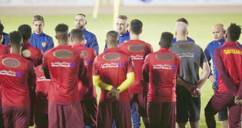 فيتفيا خلال لقائه مع اللاعبين في التدريبات (المركز الإعلامي بنادي القادسية)