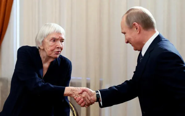 أرشيفية للناشطة ليودميلا أليكسييفا والرئيس الروسي فلاديمير بوتين (رويترز)