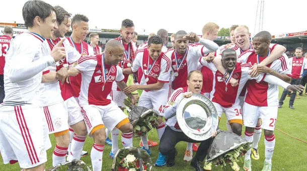 لاعبو أياكس الهولندي خلال احتفالهم باللقب (إ.ب.أ)