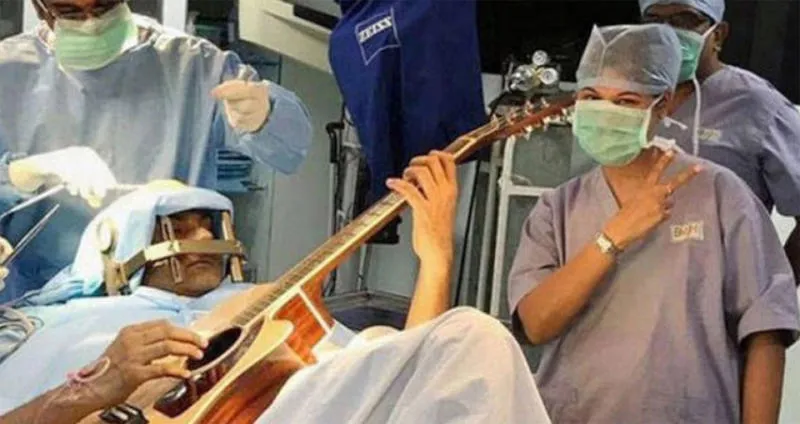 مريض يعزف الغيتار أثناء خضوعه لجراحة في المخ