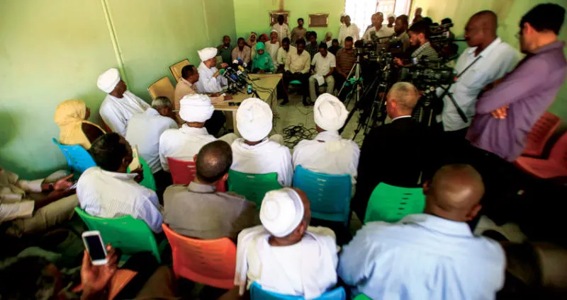 وزير التعاون الدولي القيادي في حزب {المؤتمر الشعبي} ادريس سليمان خلال مؤتمر صحافي في الخرطوم أمس (أ.ف.ب)