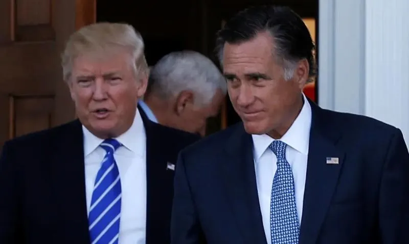 دونالد ترمب الرئيس الأميركي مع ميت رومني العضو بالحزب الجمهوري الأميركي (رويترز)