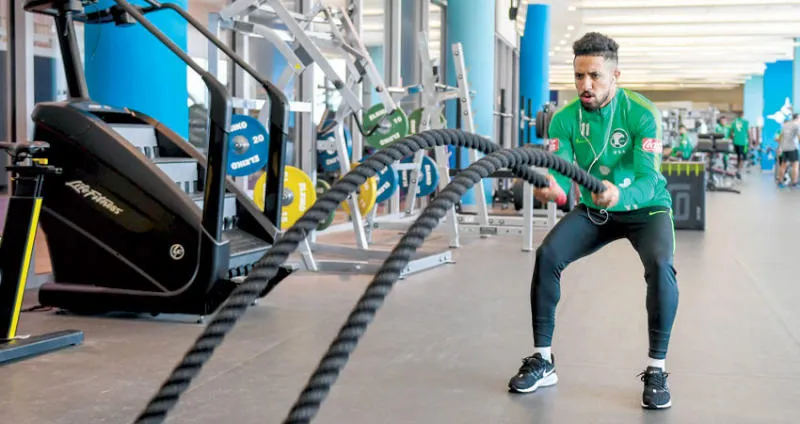 هتان باهبري خلال تدريبات اللياقة والحديد (الشرق الأوسط)