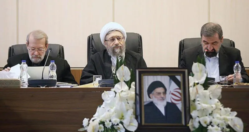 صادق لاريجاني في أول يوم من ترؤسه لمجلس تشخيص مصلحة النظام أمس (تسنيم)