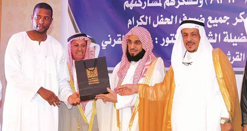 الداعية السعودي عائض القرني ورجل الأعمال سعد القرشي خلال تكريمهما للنجوم