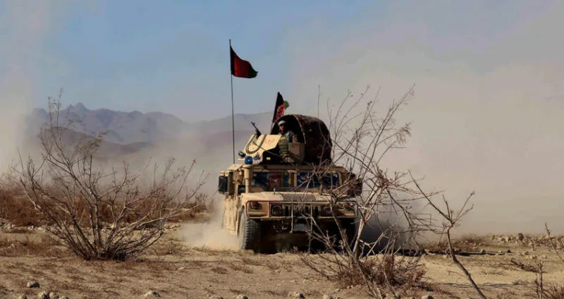 مدرعة أفغانية في مطاردة لفلول «طالبان» بمنطقة شاه والي كوت في قندهار أول من أمس (إ.ب.أ)