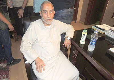 بديع خلال عملية توقيفه فجر أمس (إ.ب.أ)