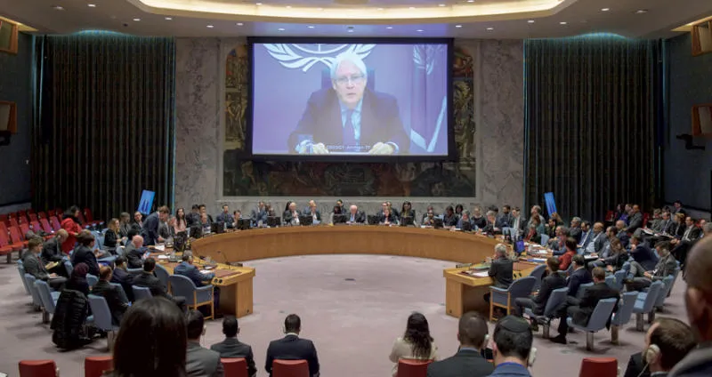 غريفيث مخاطباً مجلس الأمن أمس (الأمم المتحدة)