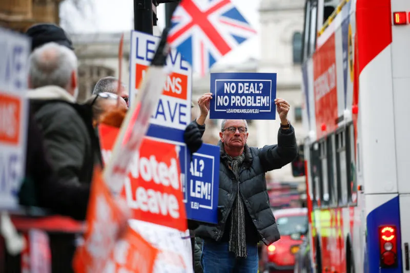مؤيدون للخروج من الاتحاد الأوروبي قرب مقر مجلس العموم في لندن (رويترز)
