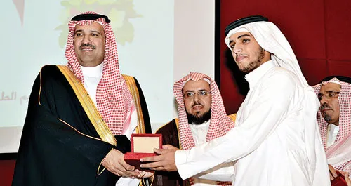 الأمير فيصل بن سلمان أمير منطقة المدينة المنورة يكرم أحد الطلبة المتفوقين دراسيا بتعليم المنطقة («الشرق الأوسط»)