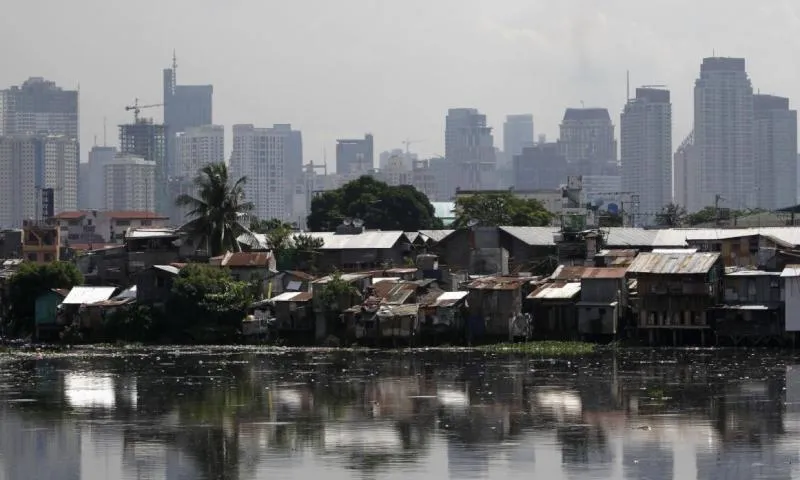 مبانٍ شاهقة في الخلفية وأمامها مساكن فقيرة في مانيلا - أرشيف (رويترز)