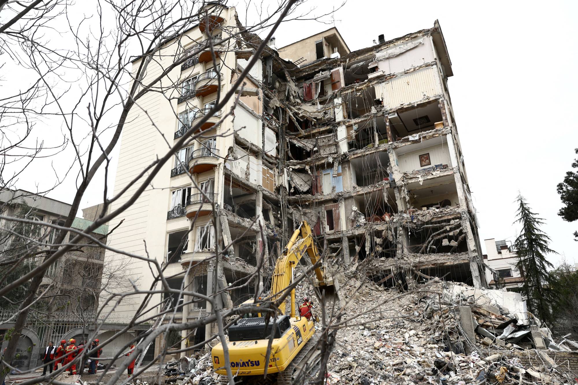 عمال إنقاذ يعملون على إزالة ركام مبنى دُمّر بغارة إسرائيلية على طهران (رويترز)
