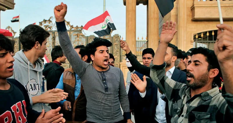 مظاهرة ضد سوء الخدمات والبطالة أمام مقر محافظة البصرة الجمعة الماضي (أ.ب)