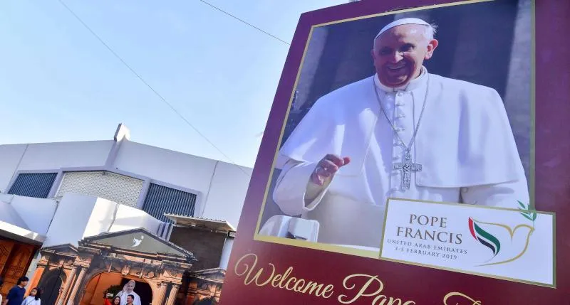لافتات ترحيب بالبابا فرنسيس في شوارع أبوظبي (أ.ف.ب)