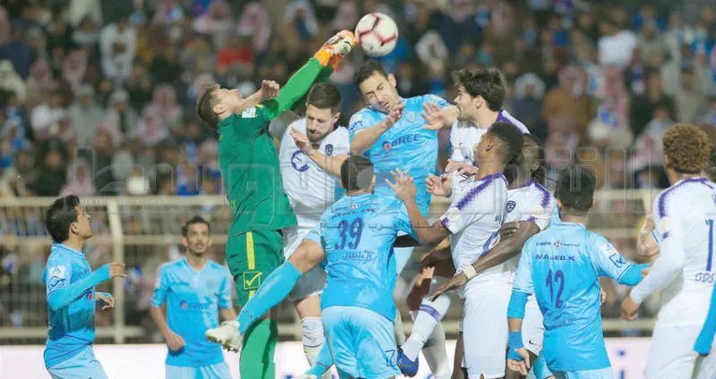 من مباراة الهلال والباطن أمس (تصوير: علي الظاهري)
