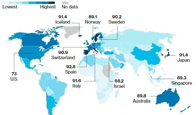خارطة تظهر بالأرقام البلدان الأكثر صحة (بلومبرغ)