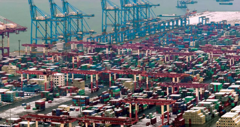 أحد موانئ إقليم شاندونغ الصيني شرق البلاد (أ.ب)