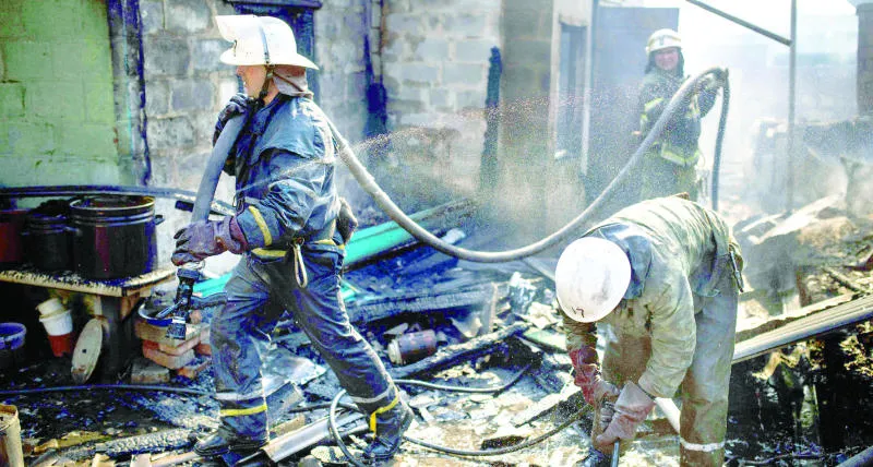 رجل إطفاء يحاول إخماد حريق نتج عن تجدد المعارك في مدينة دونيتسك أمس (أ.ف.ب)