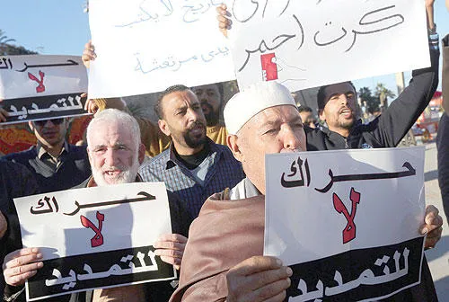 ليبيون ضد التمديد للمؤتمر الوطني العام (البرلمان) في العاصمة طرابلس أول من أمس (أ.ف.ب)
