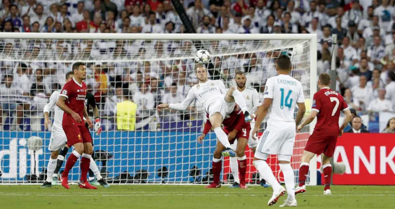 غاريث بيل يسجل بلعبة خلفية طائراً أجمل أهدافه أمام ليفربول في نهائي دوري الأبطال الموسم الماضي