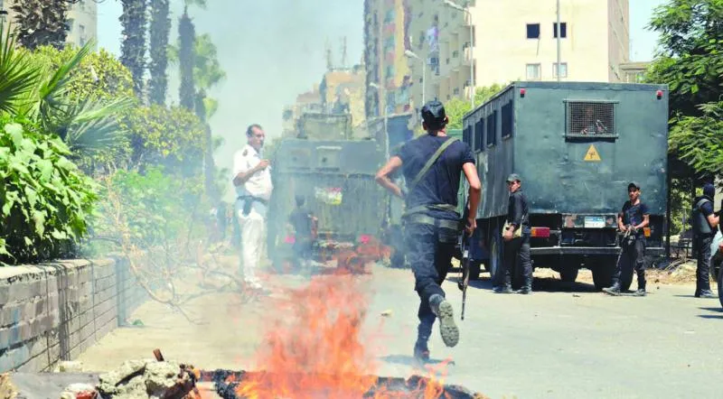 لقطة من اشتباكات أنصار الإخوان مع الأمن المركزي المصري في الذكرى الأولى لفض اعتصام رابعة في محافظة الجيزة (رويترز)