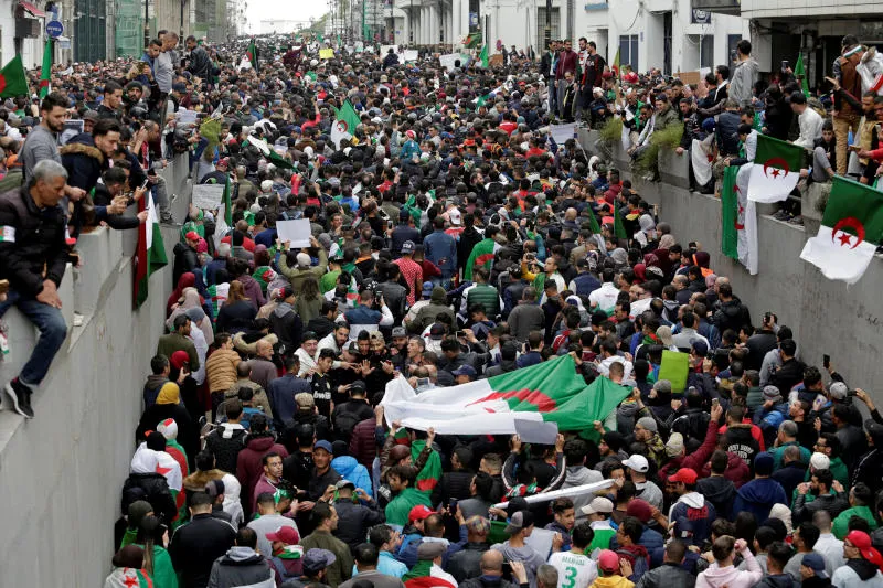 وينظم جزائريون احتجاجات في الشوارع منذ 22 فبراير (شباط) للتعبير عن غضبهم من البطالة والفساد واعتراضا على سعي الرئيس البالغ من العمر 82 عاما للفوز بولاية خامسة في انتخابات تجرى في 18 أبريل (نيسان).
