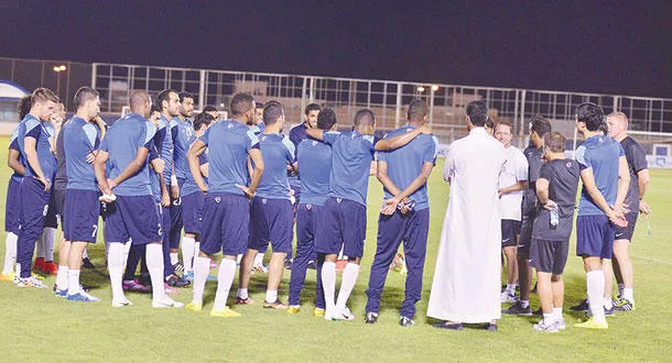 مدرب الهلال ريجي محاطا بلاعبي الفريق في التدريبات